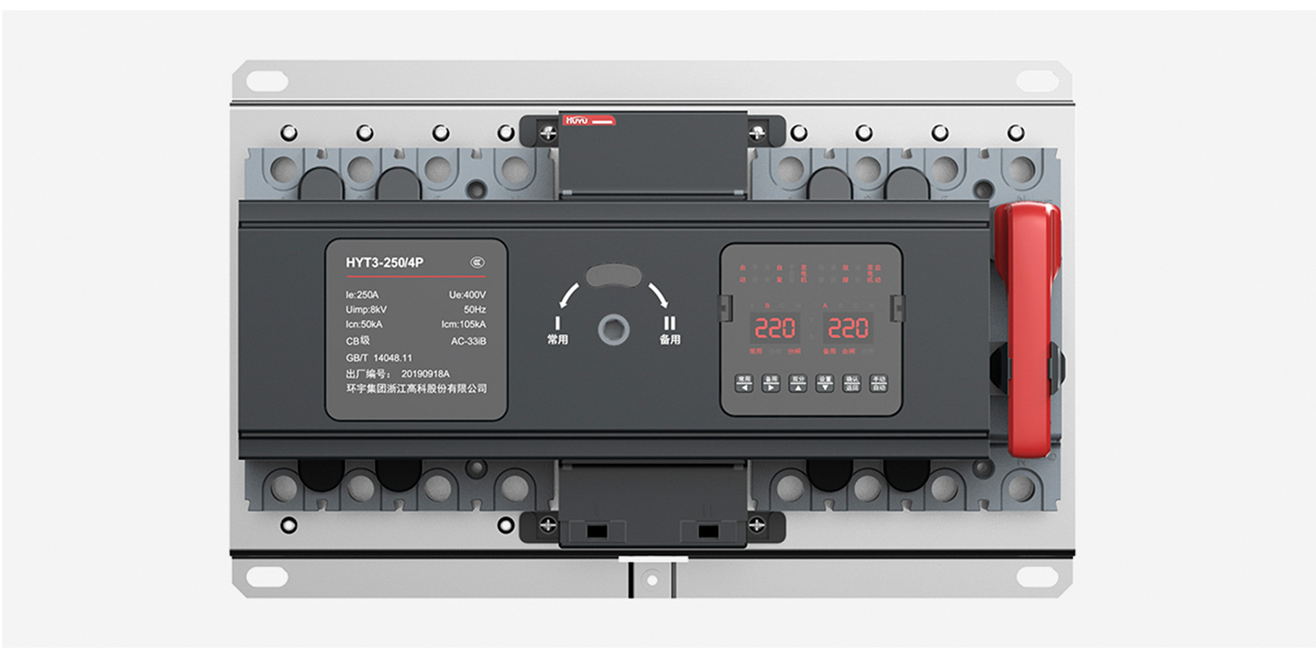 隨著科技的不斷進步,各行業(yè)的競爭日趨激烈,環(huán)宇為了一改以往錯綜雜亂的系列產(chǎn)品形象,聯(lián)合木馬一同打造具有整體性和統(tǒng)一性的產(chǎn)品PI形象設計。產(chǎn)品在滿足功能實現(xiàn)的前提之下,多考慮人機工程學,在開關(guān)把手以及按鍵等部件的設計上,造型的厚實度,以及材質(zhì)的溫潤感帶給用戶舒適的操作體驗。產(chǎn)品定位是中端市場,在滿足功能實現(xiàn)**化的前提之下,在整體的設計上多考慮用料的合理分配,避免材料的浪費。小型斷路器運用微曲面和圓角,融合環(huán)宇logo中U和H元素,形成高山飛瀑的造型特征,同時在立體呈現(xiàn)效果上展現(xiàn)出雙手呵護、安全可靠的設計理念。在側(cè)面運用日出東方曲線做為紋理,一方面起到散熱功能,同時增強產(chǎn)品的質(zhì)感,提升用戶在安裝過程中的觸感。