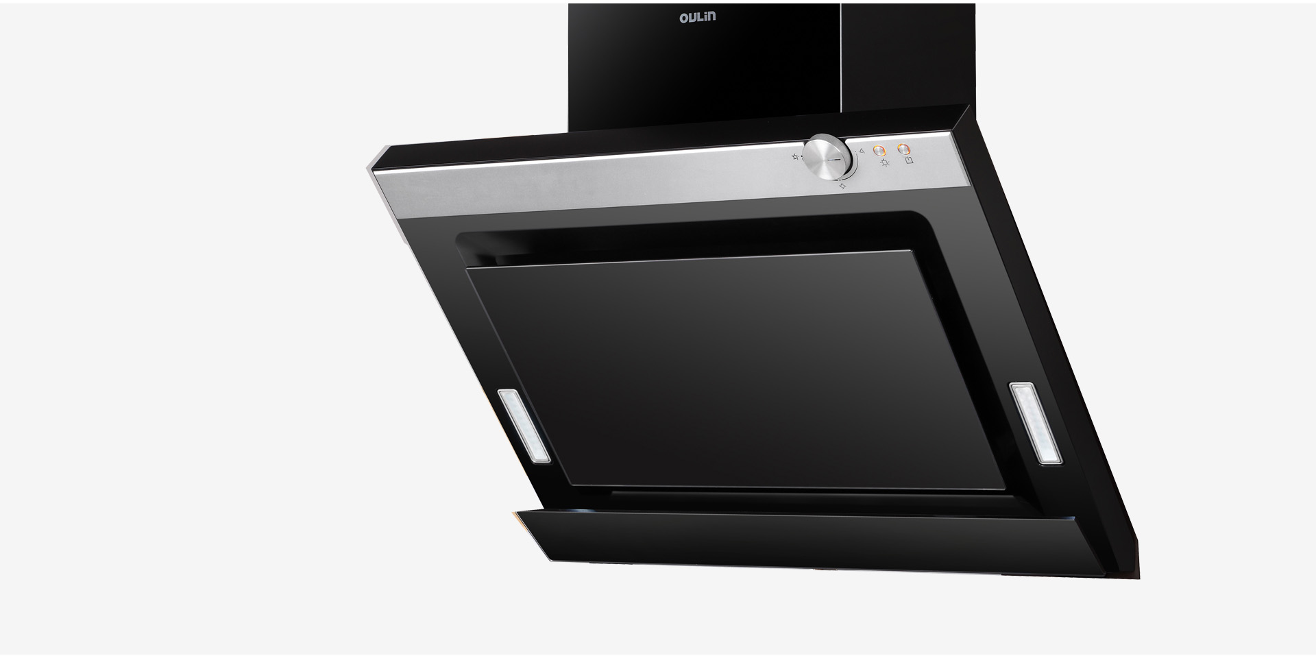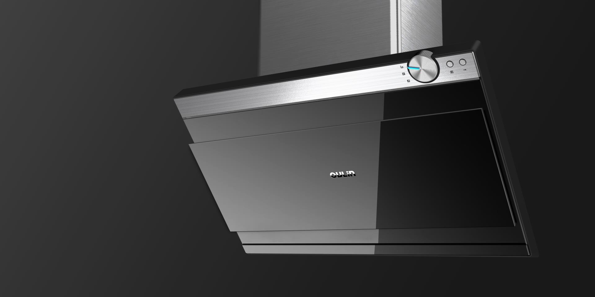 該抽油煙機(jī)提出了無級變速的全新理念,使得油煙機(jī)的風(fēng)量完全根據(jù)用戶的需求去變換,拋棄了原先死板的檔速模式。這種調(diào)速方式精確專業(yè),也體現(xiàn)作為一個廚房掌控者的生活態(tài)度,帶來前所未有的體驗。該系列廚房電器外觀采用黑色鋼化玻璃,配上高亮銀色、玫瑰金的航空鋁材,按照美學(xué)比例進(jìn)行幾何分割,給人高端價值的印象。油煙機(jī)內(nèi)部采用內(nèi)單層O型過濾網(wǎng),外平板側(cè)吸過濾,內(nèi)外結(jié)合油煙徹底分離,健康環(huán)保。精確的45度黃金斜角敞開設(shè)計,防止用戶意外磕碰。整體采用近距快吸式設(shè)計,徹底排除油煙。同時,我們擴(kuò)大了金屬油杯的容量,減少倒油次數(shù),從根本上方便使用者清理。在燃?xì)庠钤O(shè)計上,我們大膽采用顯示屏+觸控調(diào)節(jié)按鍵設(shè)計,任意調(diào)控烹飪模式,為用戶帶來更智能的廚房體驗。