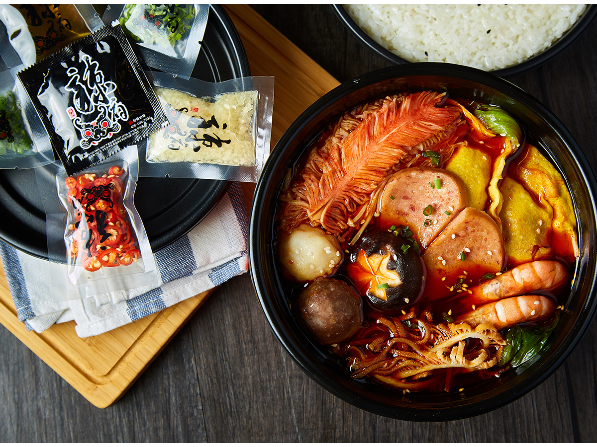 本次木馬為辣府提供的全流程服務(wù)設(shè)計(jì),總體體現(xiàn)在餐品外賣包裝上。希望從包裝的方式上,解決辣府冒菜的高溫保溫問題,提升用戶收到后的體驗(yàn)感。甚至在外帶包裝的方式上,我們也提出了既增加品牌宣傳的吸引力,又讓用戶得到真正實(shí)惠的手提保溫包,如此可為配送員在服務(wù)過程中提供便利,同時也區(qū)別于常見的外賣打包方式。 該打包盒設(shè)計(jì)整體外觀采用黑色磨砂pp,配以啞光辣椒紅色系紙?zhí)?,潮流感和安全度二合一。中層專屬醬料碟,餐前將所配醬料集中擠在環(huán)內(nèi),儀式感極強(qiáng),上附雙耳蓋,專供餐具卡位擺放,充分利用空間。頂層米飯層,合理的模具使用,給消費(fèi)者多一種選擇。