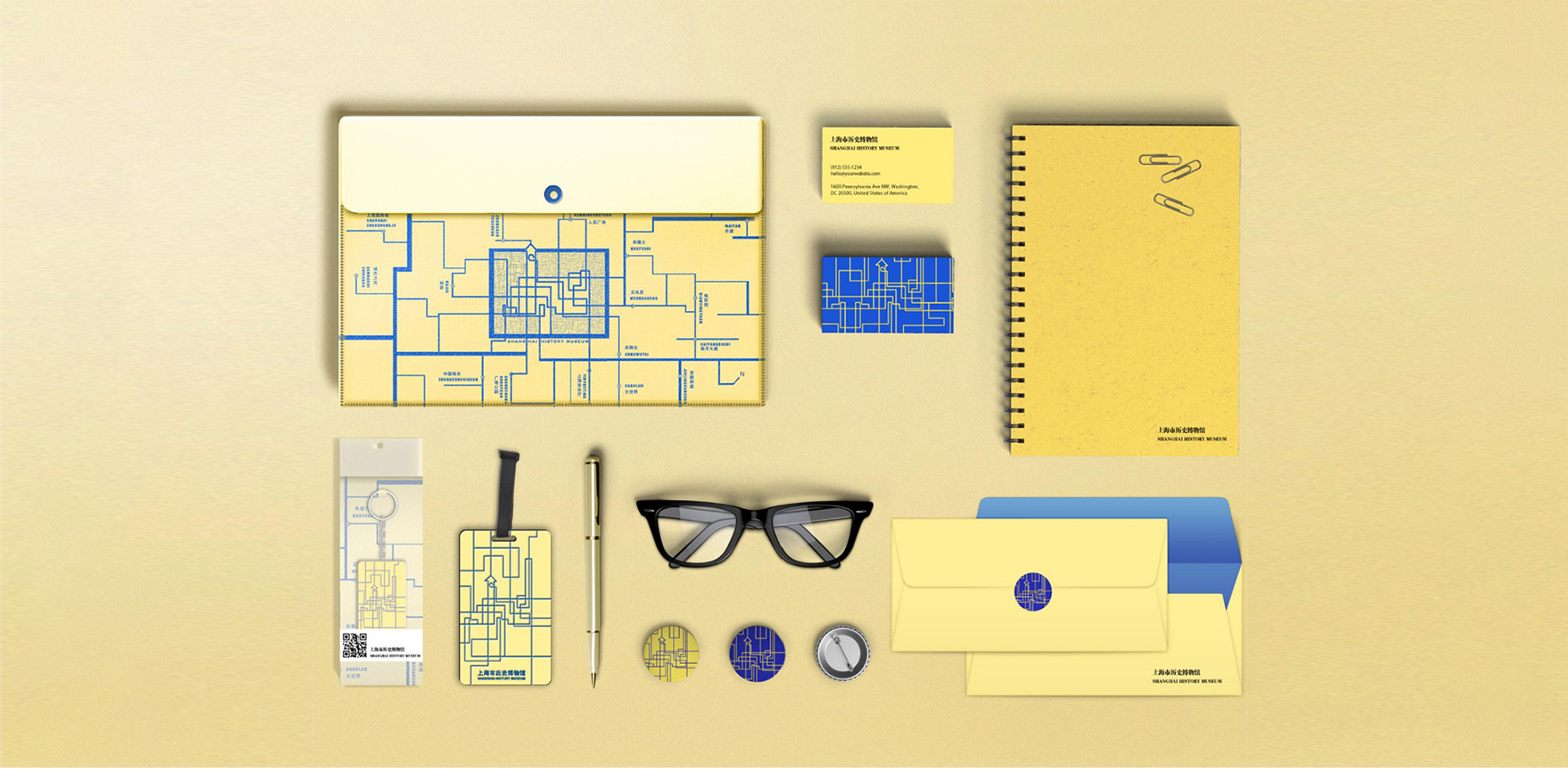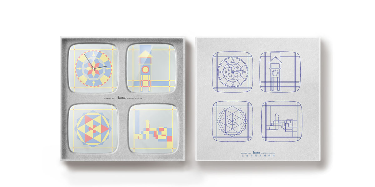 靈感來源于跑馬總會大樓的頂視地圖,跑馬廳三次易地。于是結(jié)合地圖線路的感覺,把控線條的節(jié)奏與韻律;有規(guī)律的將跑馬總會大樓輪廓勾勒出來。最后結(jié)合跑馬廳附近祥和的生活環(huán)境為元素做了一系列的衍生。跑馬總會大樓于最引人注目的要屬它的塔鐘。四面圍合而成的四面塔鐘是大樓的特色之一,設(shè)計師提取鐘盤上面的花紋、還有一些樓的內(nèi)部裝飾;將這些具有古典主義特色的元素再設(shè)計,以現(xiàn)代的表達(dá)方式呈現(xiàn)。