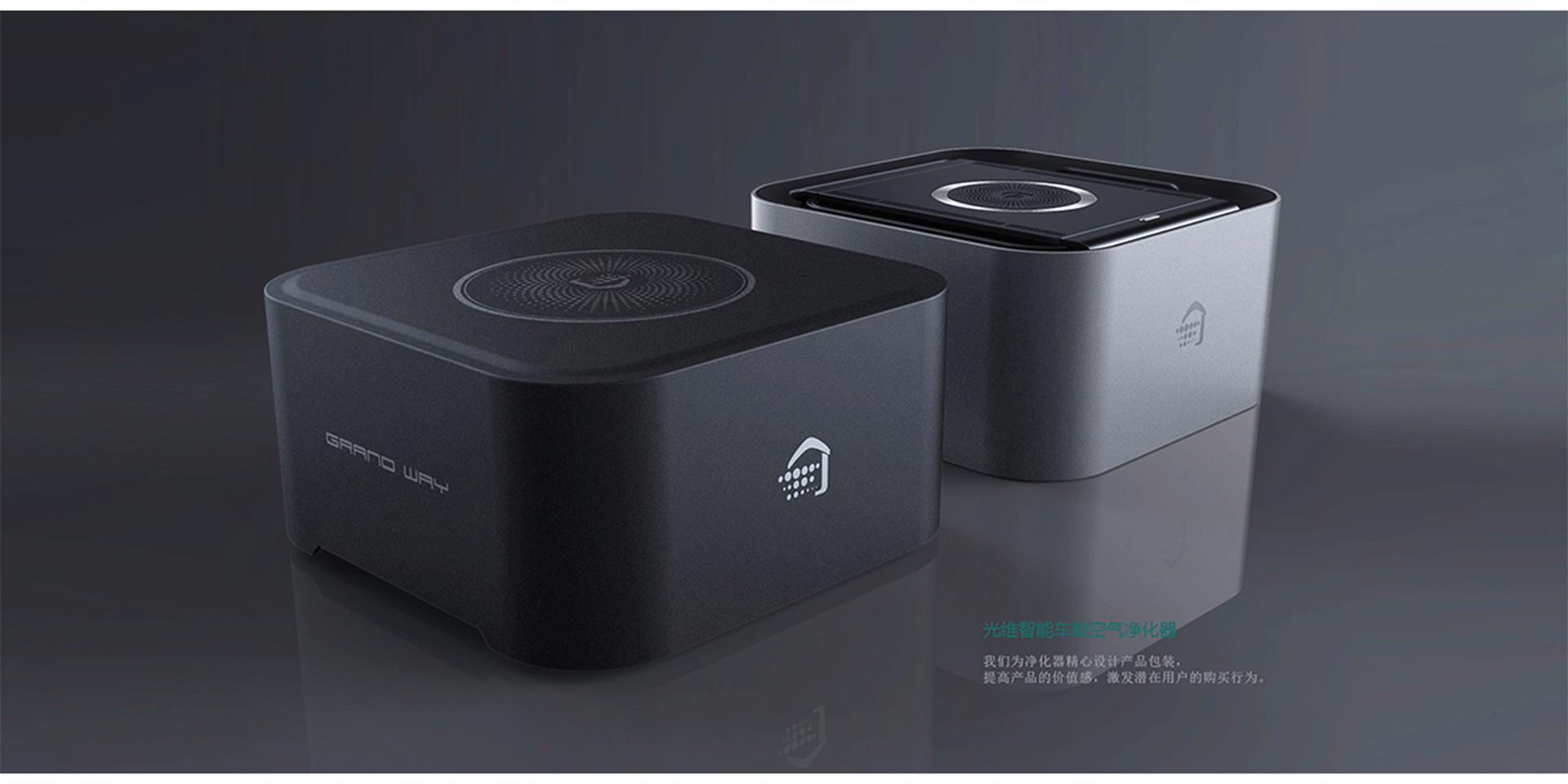 運用簡約的設計語言進行外觀設計,運用不同的表面處理工藝提升產(chǎn)品價值感和美觀性,提供多樣的配色以滿足用戶多樣的審美需求。產(chǎn)品亮點在于內(nèi)部集成負離子檢測器,實時監(jiān)測PM2.5濕度等其他空氣指數(shù),通過產(chǎn)品前方屏幕顯示給用戶,并且智能開啟凈化模式,周圍的提示燈會隨空氣質(zhì)量的改變而改變,讓用戶更為直接的觀測到空氣質(zhì)量。我們?yōu)閮艋骶脑O計產(chǎn)品包裝,提高產(chǎn)品的價值感,激發(fā)潛在用戶的購買行為。用于汽車內(nèi)部空氣檢測和凈化,智能處理汽車內(nèi)部有害氣體如:PM2.5、二氧化碳、一氧化碳、等有害氣體調(diào)節(jié)車內(nèi)空氣濕度,提高汽車使用者的駕駛感受,有利于汽車使用者的身心健康。
