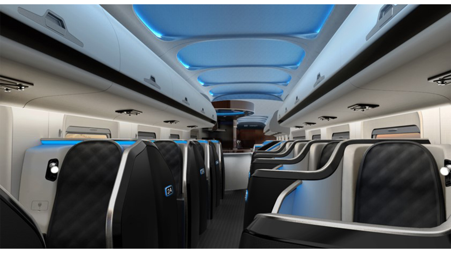 在確保內(nèi)飾造型的整體性和色彩搭配的協(xié)調(diào)性的同時,便捷的功能點以及巧妙的布局規(guī)劃,是整個頭等艙設(shè)計的核心。獨立的私人空間,科技感十足的乘坐休息區(qū)、全景觀景視窗、公共大空間會談區(qū),成為該方案的設(shè)計特色。每個位置都有對應(yīng)的大玻璃窗,可以方便的欣賞到窗外的景色,加之車廂內(nèi)的燈光效果,渲染浪漫星空,讓每次出行氛圍都成為一種享受!新設(shè)計按乘坐、用餐、乘務(wù)、洗手間、行李存放的功能劃分為5個區(qū)域,每個區(qū)域都配備了完整的功能設(shè)施。隨著高鐵的迅猛發(fā)展,更加舒適安全的乘坐,成為高鐵新的進化方向。我們把從檢票、上車、入座、用餐到最后下車之間的每一個服務(wù)觸點作為研究對象,尋找提升用戶體驗的機會點。