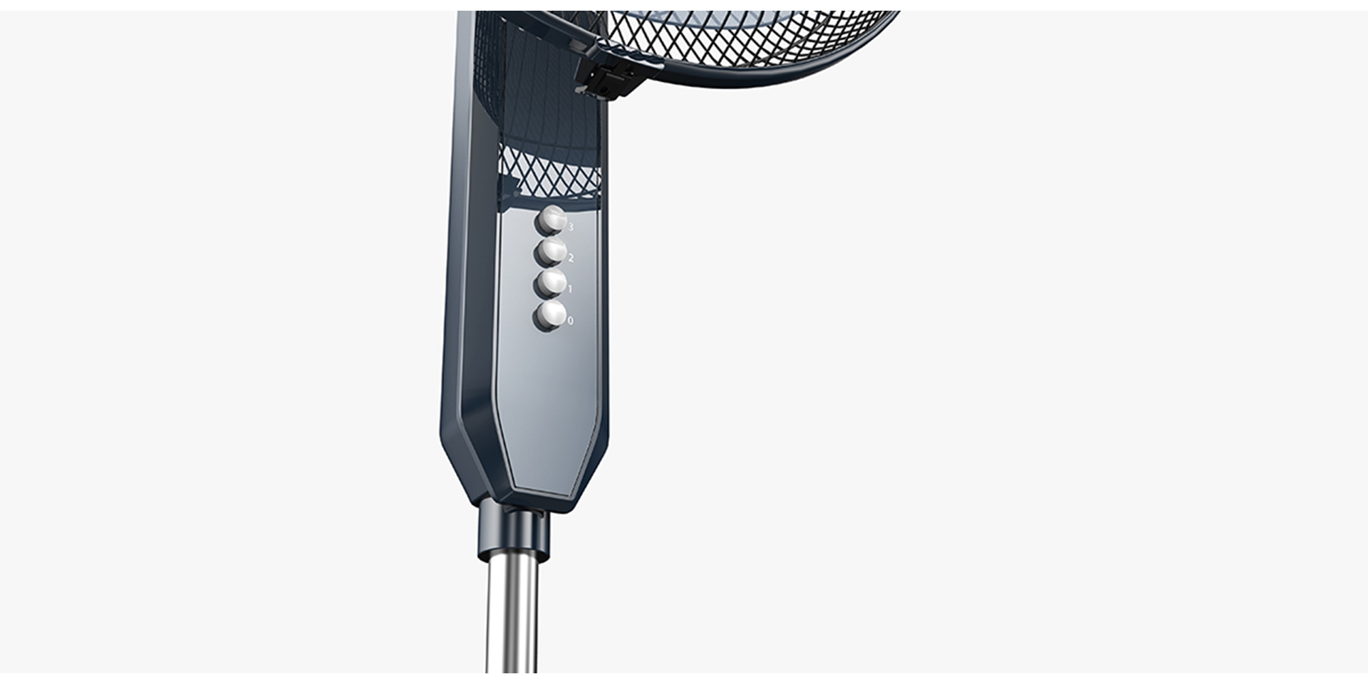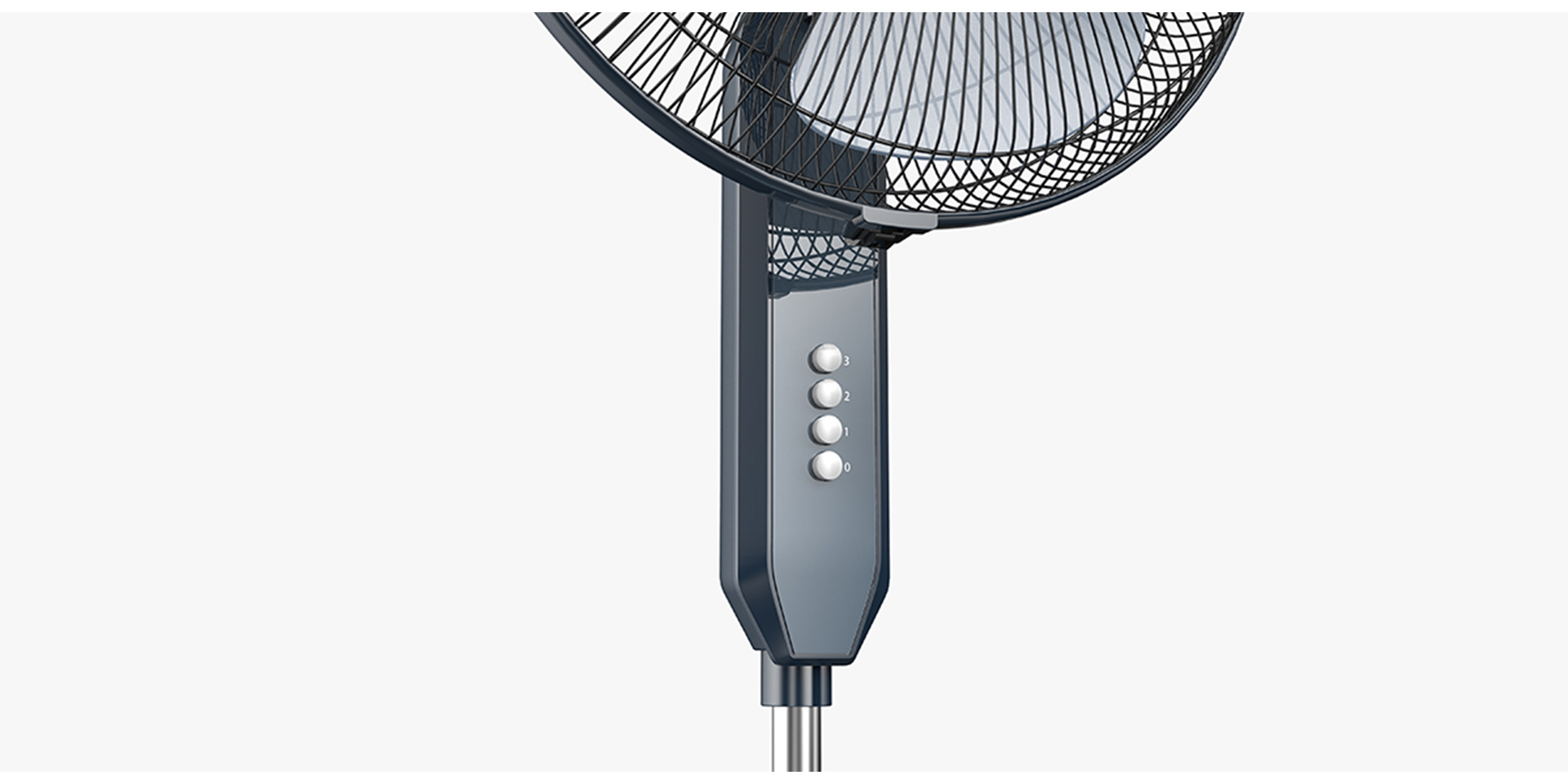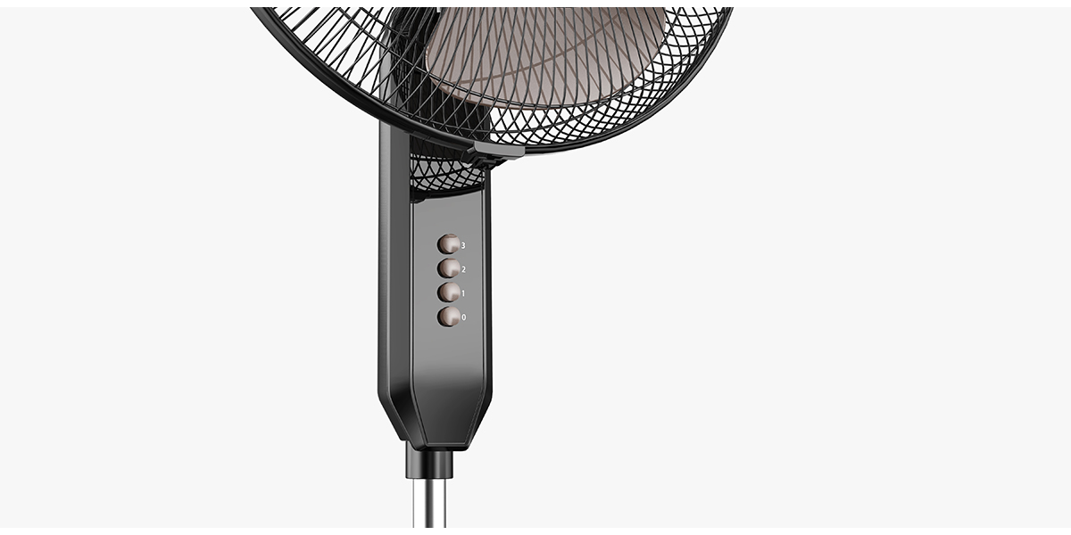 此落地扇以印度尼西亞為主要目標(biāo)銷售市場,并依據(jù)印度尼西亞市場的特殊性,明確了此落地扇以低成本,更顯薄、更顯立體感為設(shè)計方向。扇盒前蓋采用微弧面特征,讓產(chǎn)品具有立體感的同時不過分夸張、突兀。前殼上下形體形成的視覺落差以及紋理的處理,增加了產(chǎn)品層次感。機(jī)身主要采用深色系實色注塑,不僅折射更豐宮、顯扎實,亦增強產(chǎn)品立體感,符合印度尼西亞人的審美。其大屏顯示、按鍵功能羅列齊全,讓使用者得到更直觀、方便的使用體驗。