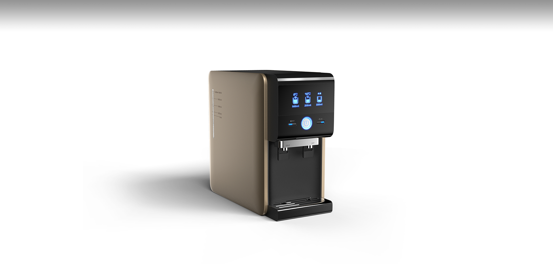 此款飲水機(jī)采用國(guó)際上先進(jìn)的“RO 膜反滲透”凈水技術(shù)??梢詫⑺畠艋紻TS10以內(nèi)的標(biāo)準(zhǔn),做到出水即凈水。無線操控技術(shù)使用戶能夠遠(yuǎn)程控制加熱,日常使用更加便捷。在設(shè)計(jì)上更加注重產(chǎn)品的價(jià)值感和科技感,摒棄了傳統(tǒng)的廚下凈水器的造型而運(yùn)用新的產(chǎn)品設(shè)計(jì)語(yǔ)言,整體風(fēng)格高雅大氣而不失精致。正面的顯示屏恰到好處的顯示亮度,使用戶不僅在白天能看清數(shù)值,在夜晚也不會(huì)感覺到刺眼。簡(jiǎn)潔明了的圖標(biāo)指示,飲水機(jī)狀態(tài)一目了然,自然可以跟用戶有友好地互動(dòng)。隨著社會(huì)文明的進(jìn)步,不同階層的人群都在不斷的在尋找與自身地位相符合的產(chǎn)品?!叭齻€(gè)爸爸”凈水器的設(shè)計(jì)重視人性化與使用者的交互,力求做出消費(fèi)者、公眾、用戶和經(jīng)銷商都喜歡的產(chǎn)品。