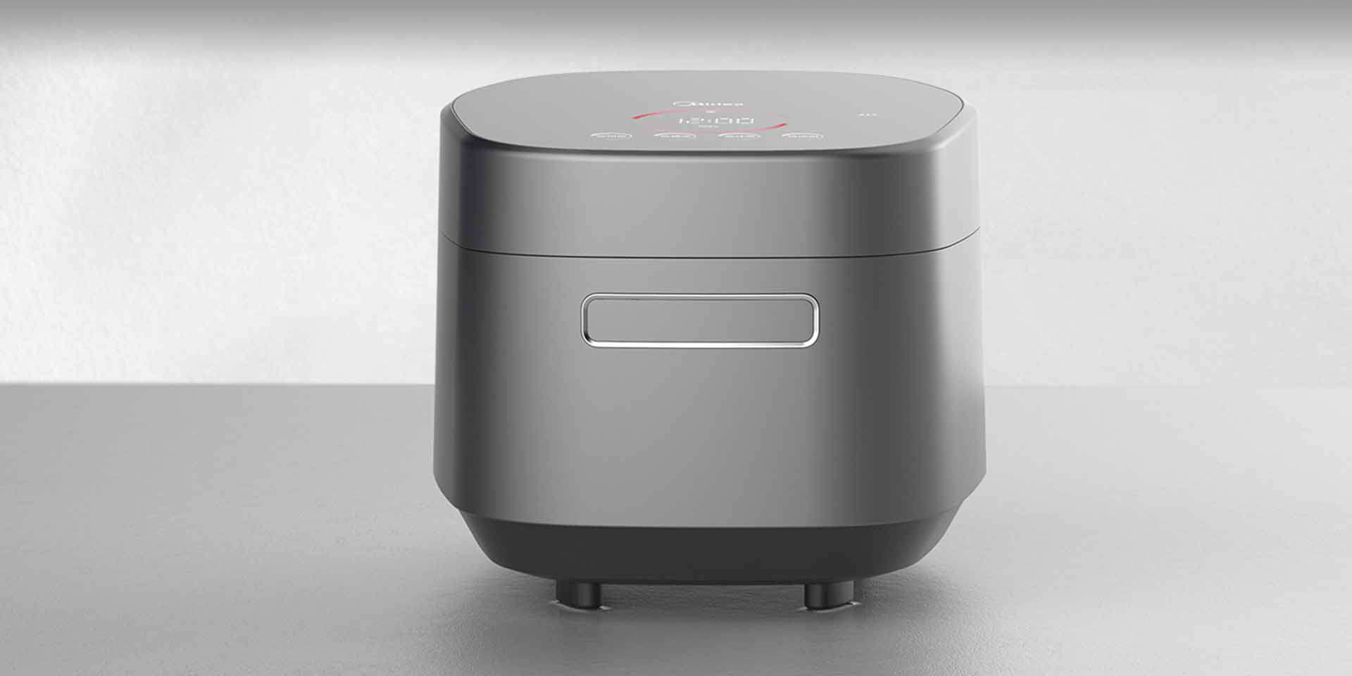 大米是中國人飲食的基本主食,就像碳是許多有機物質(zhì)的基本元素一樣。該產(chǎn)品的設(shè)計靈感來源于六邊形的碳。這種獨特的形狀是未來派和優(yōu)雅。矩形按鈕使用戶可以更方便地打開上蓋,玻璃面板反射高端CMF元素。機身的磨砂珠光注塑成型賦予產(chǎn)品細(xì)膩的質(zhì)感。該工藝不使用油漆,因此更環(huán)保。界面上的環(huán)形狀態(tài)燈允許用戶即使在遠(yuǎn)處也能感知當(dāng)前的烹飪狀態(tài)。