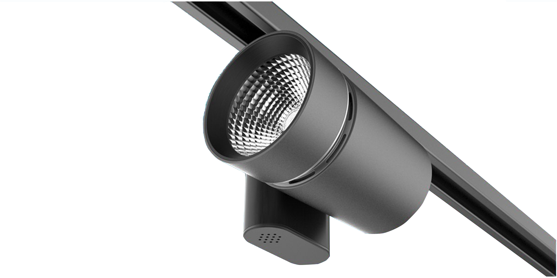 該筒燈其簡潔造型和色彩語言,使整個系列的產(chǎn)品體現(xiàn)了更高的水準(zhǔn)。在設(shè)計過程中,將造型與功能相結(jié)合,同時把握對于使用環(huán)境的特點(diǎn)和使用受眾人群的影響;在造型上,精簡的切割將燈桶一分為二,力求視覺上的簡潔和大氣;的在色彩上,使用亞光黑色準(zhǔn)確把握產(chǎn)品的質(zhì)感和品質(zhì)——力求打造高端時尚先鋒的神秘感和品質(zhì)感。將圓與方的巧妙結(jié)合,使產(chǎn)品造型具有東方意蘊(yùn),黑色又彰顯了品質(zhì)感,符合前期設(shè)計定位和需求點(diǎn);這款軌道燈在于將原本笨重的產(chǎn)品本身用簡潔的造型詮釋,穩(wěn)重間又不失年輕,為現(xiàn)代高端品牌店量身打造。
