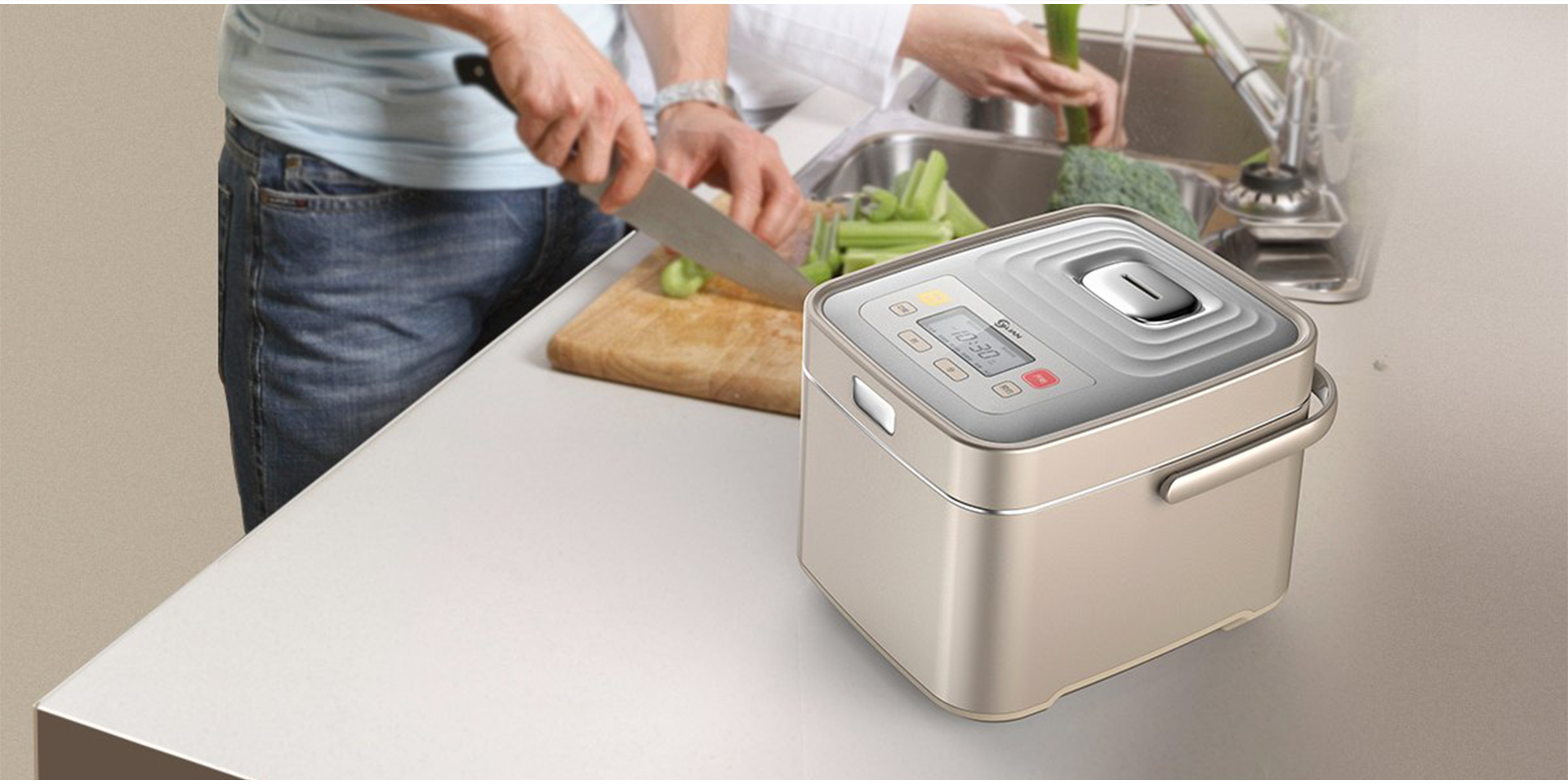 該電飯煲采用新穎的方煲外觀設(shè)計(jì),方形綿延向外的水紋,以起伏造型打破傳統(tǒng)呆板的外觀設(shè)計(jì);配合采用圓潤(rùn)造型元素的蒸汽帽、提拉把手和頂置操作區(qū),使整個(gè)產(chǎn)品散發(fā)著無(wú)窮的生活智慧與品位。方倒角的設(shè)計(jì)語(yǔ)言貫徹在整個(gè)設(shè)計(jì),尋找變化與統(tǒng)一,達(dá)到一個(gè)平衡,增加了更多對(duì)于人使用的考慮,醒目的按鈕,頂置的操作區(qū)。蒸汽帽與整體的統(tǒng)一與變化,使產(chǎn)品多了靈動(dòng)和親和力,以及對(duì)使用者眾多的關(guān)愛。其每一處的造型變化都是在人機(jī)工程學(xué)的科學(xué)指導(dǎo)下嚴(yán)密推敲而設(shè)計(jì)的,給予使用者最優(yōu)的用戶體驗(yàn)。