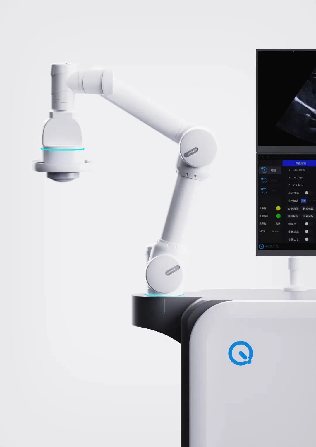 該治療系統(tǒng)集成6自由度機(jī)械臂、水處理臺(tái)車與實(shí)時(shí)超聲監(jiān)測(cè),實(shí)現(xiàn)無創(chuàng)、無輻射的可重復(fù)治療。銀白配色與非對(duì)稱造型打破傳統(tǒng)醫(yī)療設(shè)備冰冷感,配合智能燈帶設(shè)計(jì),在科技感與親和力間取得平衡。系統(tǒng)通過診療一體化設(shè)計(jì)顯著提升操作效率,以創(chuàng)新設(shè)計(jì)破解寵物腫瘤治療痛點(diǎn)。