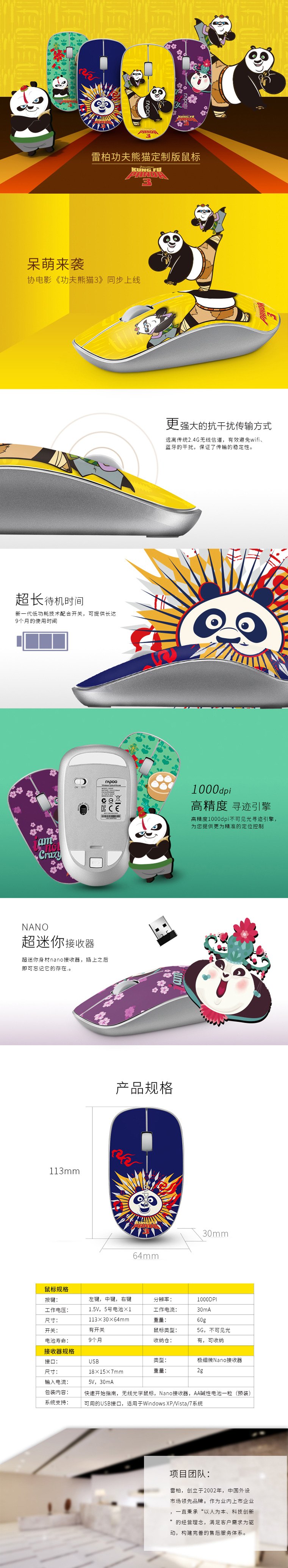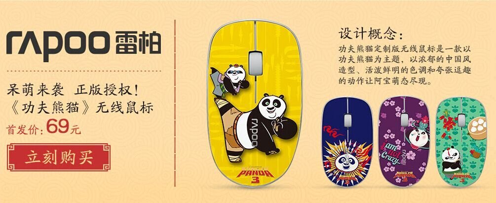 雷柏?zé)o線鼠標(biāo)——珍藏版雷柏功夫熊貓定制版無線鼠標(biāo)