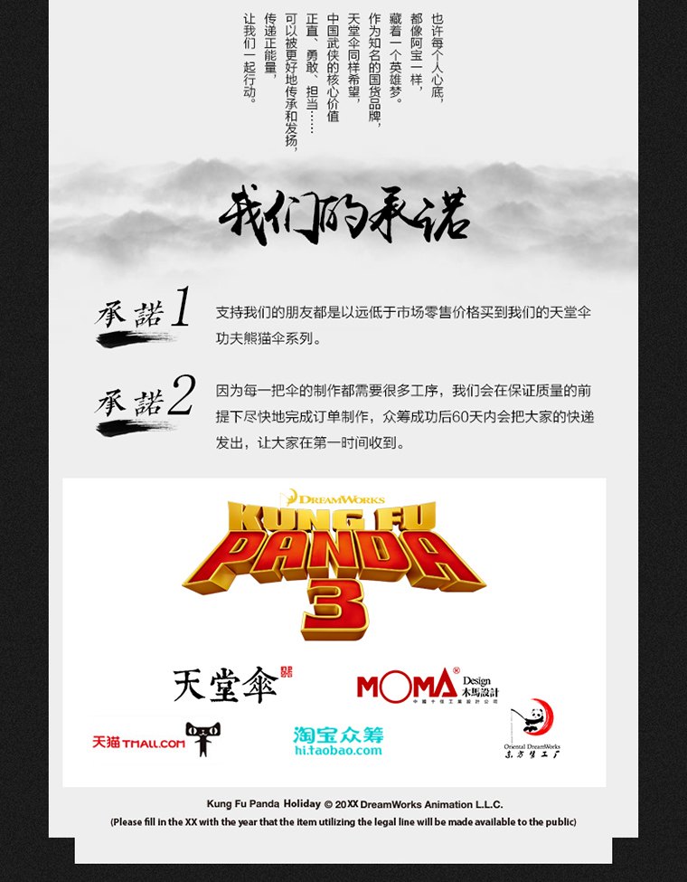 《功夫熊貓3》是《功夫熊貓》系列的第三部電影,該片將于2016年1月29日在中國和北美地區(qū)首映。于此同時,在淘寶眾籌以及手機(jī)淘寶各大頁面上,一大波功夫熊貓系列的衍生產(chǎn)品也拉開了眾籌銷售的序幕。