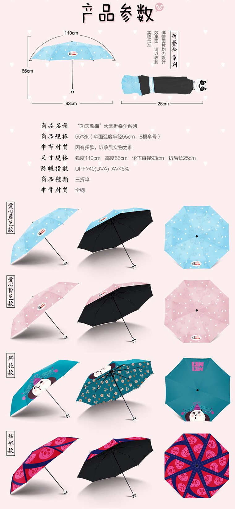 功夫熊貓3 正版授權(quán) 天堂傘多款晴雨傘 向夢想致敬——功夫熊貓3官方正版授權(quán),功夫熊貓系列之【折疊碎花款】天堂傘功夫熊貓折疊傘