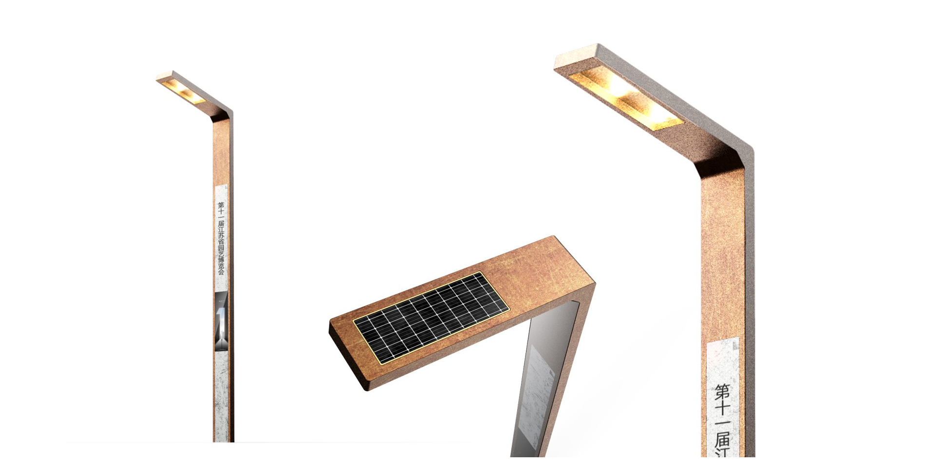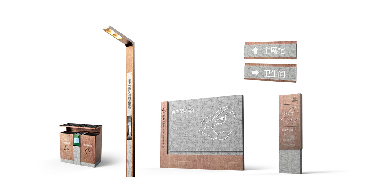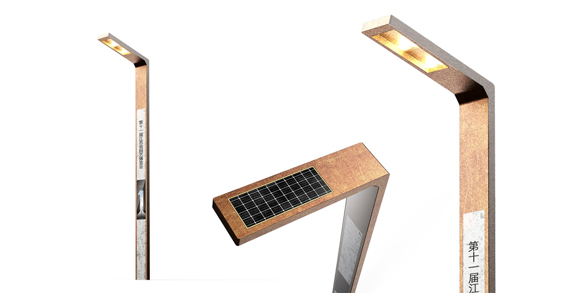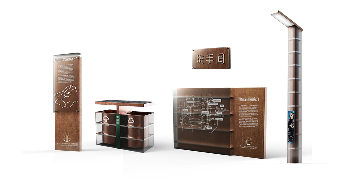 在本方案中,設(shè)計師充分利用能體現(xiàn)主展館的“工業(yè)之風(fēng)”特色并汲取“城市剪影”的相關(guān)元素,加入一些新的元素,來完成智慧路燈垃圾箱及導(dǎo)視系統(tǒng)設(shè)計,為游客帶來豐富且多層次的視覺美感。