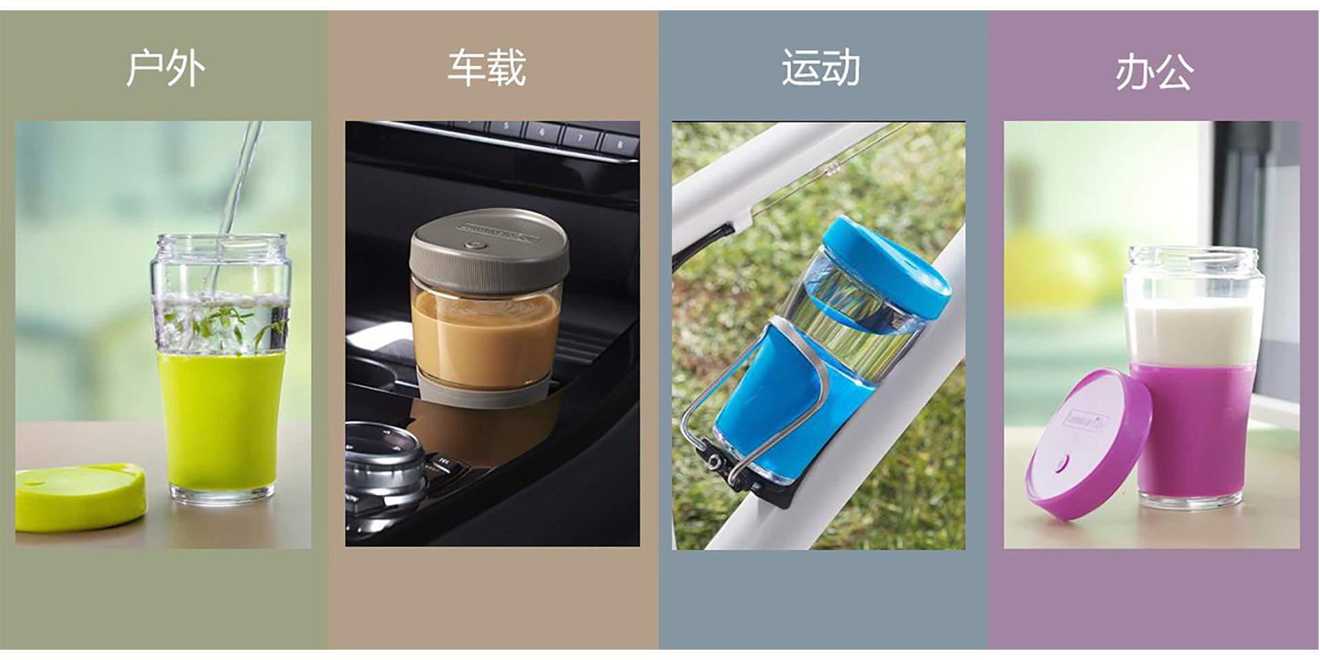 為了解決杯子在盛放熱飲時(shí)難以打開杯蓋的問題,我們?yōu)殡S行杯設(shè)計(jì)了特殊的空氣閥杯罩,及時(shí)保持杯子內(nèi)外壓強(qiáng)一致,讓用戶不再有打不開杯子的煩惱,向消費(fèi)者邁出貼心的一步。獨(dú)特的杯口的設(shè)計(jì),新的體驗(yàn)功能螺旋杯口,不泄漏,出行攜帶方便,廣口設(shè)計(jì),易清洗。杯身材質(zhì)選擇上,我們采用Luminarc標(biāo)志性的鋼化玻璃。對(duì)于大多數(shù)人來說,鋼化玻璃是安全的使用。鋼化玻璃的強(qiáng)度是五倍的普通玻璃,這使得它不易碎,更堅(jiān)固耐用。這樣一來,可以延長(zhǎng)產(chǎn)品使用壽命。我們從用戶體驗(yàn)出發(fā),為隨行杯設(shè)計(jì)安全舒適的杯套。與杯蓋一樣,它采用硅膠材質(zhì),起到防滑與隔熱的效果,并且不容易脫落。配色上,設(shè)計(jì)師們運(yùn)用時(shí)尚明快的色彩,使得隨行杯整體簡(jiǎn)潔大方,適合不同人群使用為多彩的生活增色。