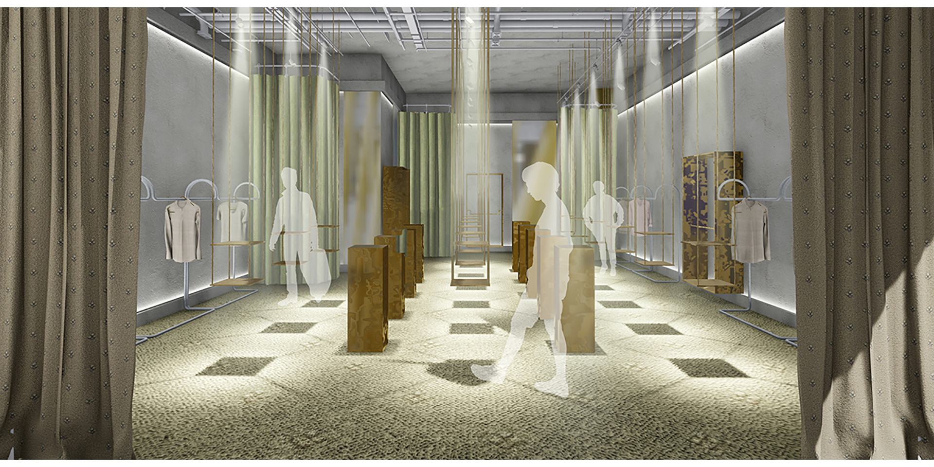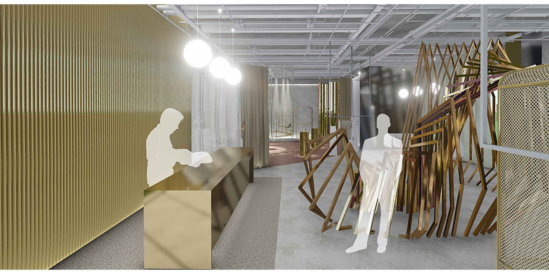 “人生如戲。萬千喜怒哀樂在劇場里一幕幕切換、上演,演盡人生百態(tài)。我們旁觀,我們沉浸,我們渴望述說自己的故事。“以“劇場”概念貫穿空間,將空間分割為不同的劇院場景,賦予不同功能分區(qū)以不同故事。