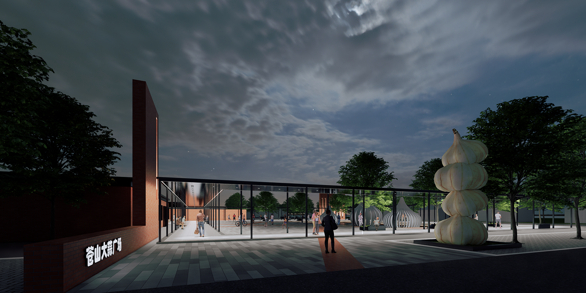 磨山鎮(zhèn)位于山東省蘭陵縣城東南,總面積82平方公里,耕地面積7.8萬畝,人口約6.3萬,依托大蒜產業(yè)高質量發(fā)展,按照“黨支部+合作社+農戶”發(fā)展模式,成立大蒜專業(yè)合作社為村莊帶來產業(yè)價值和社會價值。通過龍頭產業(yè)的聚集打造極具地域特色的產業(yè)鄉(xiāng)創(chuàng)共同體,以大蒜產業(yè)的商業(yè)聚集空間體現(xiàn)行業(yè)價值,舊建筑改造節(jié)約資源及保留城市記憶,植入蒼山大蒜文化打造縣域文化地標,市民廣場為市民提供休閑娛樂公共空間。