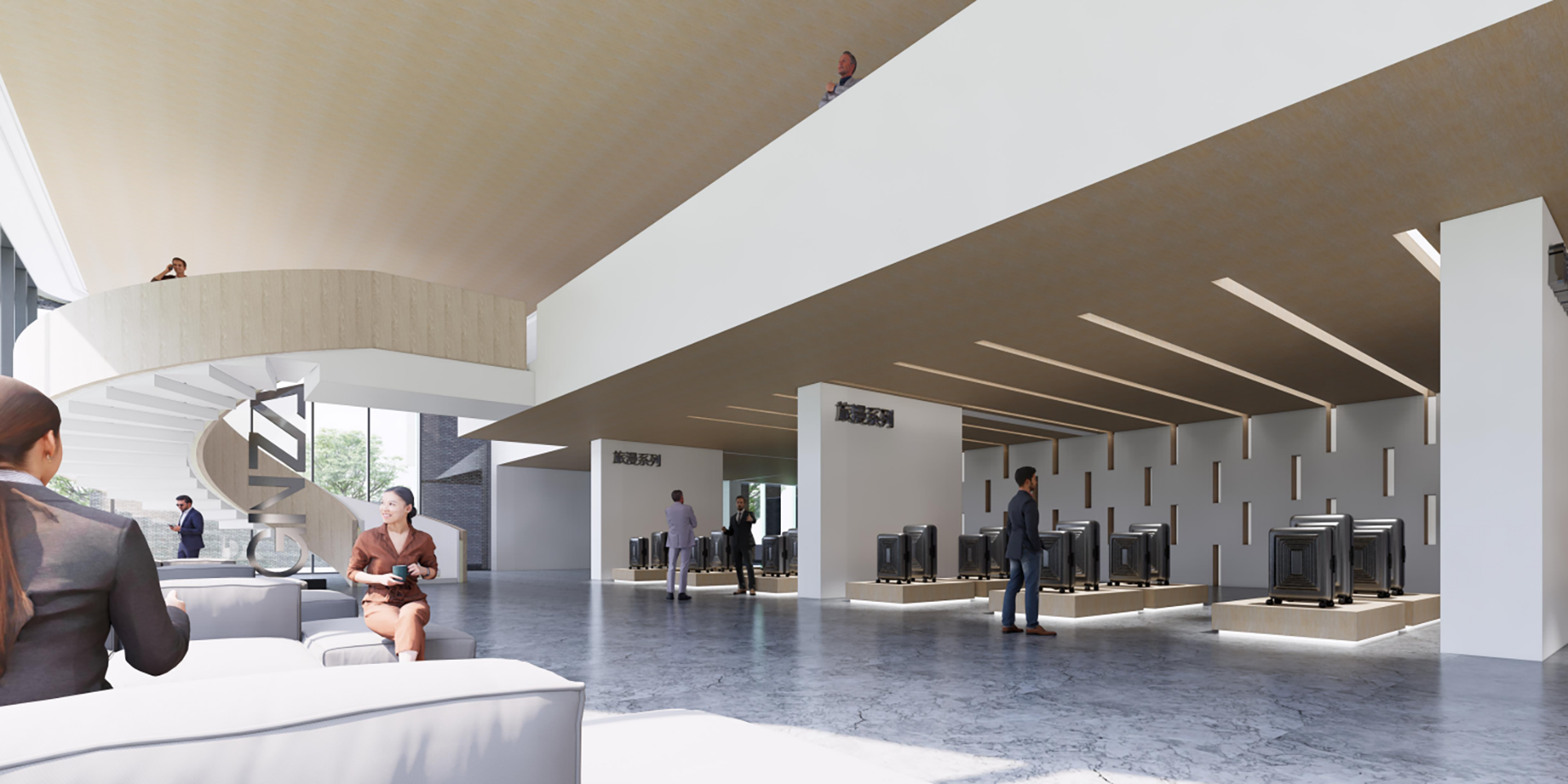 通過(guò)對(duì)銀座箱包企業(yè)文化、公司發(fā)展演變、生產(chǎn)工藝流程需求及新園區(qū)場(chǎng)地規(guī)劃現(xiàn)狀等信息的梳理,提出五大建設(shè)目標(biāo):生態(tài)集約的人本園區(qū)、展示企業(yè)的品牌形象、視覺(jué)系統(tǒng)整體性提升、數(shù)字智造的傳播體驗(yàn)、高效自動(dòng)化管理秩序。