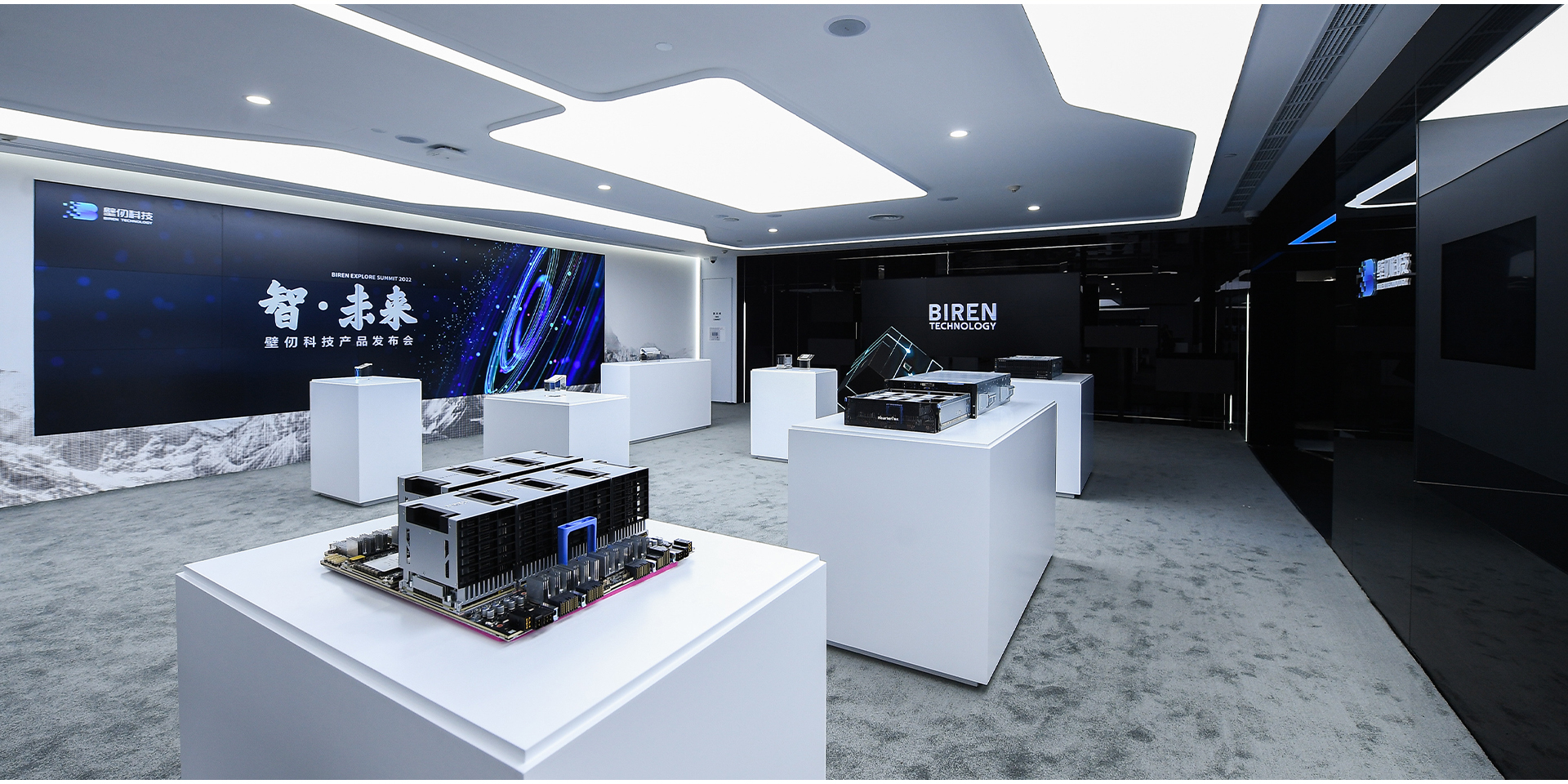 本次協(xié)助壁仞科技,打造壁礪系列計(jì)算模組。包含壁礪?106B、106C的PCIe板卡和106M的OAM模組。其中板卡采用了鋁合金外殼,從壁仞logo中提取大圓角元素作為品牌的超級符號,貫穿系列產(chǎn)品。為了體現(xiàn)產(chǎn)品強(qiáng)大性能和精致感,采用了氧化和鏡面的表面處理對比。同時鋁合金有助于散熱,使產(chǎn)品兼顧性能和外觀品質(zhì)。OAM模組上, 把圓角矩形符號作為左右連接的元素,展現(xiàn)聯(lián)合矩陣的強(qiáng)大。同時也作為安裝替換的把手區(qū)域來使用。整個系列產(chǎn)品,從內(nèi)到外始終體現(xiàn)簡潔高效,為我國芯片產(chǎn)品開拓市場打下了扎實(shí)的基礎(chǔ)。通過創(chuàng)新性使用chiplet技術(shù),壁仞科技在實(shí)現(xiàn)大芯片高良率與高性能兼顧的同時,還通過一次流片,得到兩種芯片?雙die產(chǎn)品BR100和單die產(chǎn)品BR104,覆蓋不同層級市場。