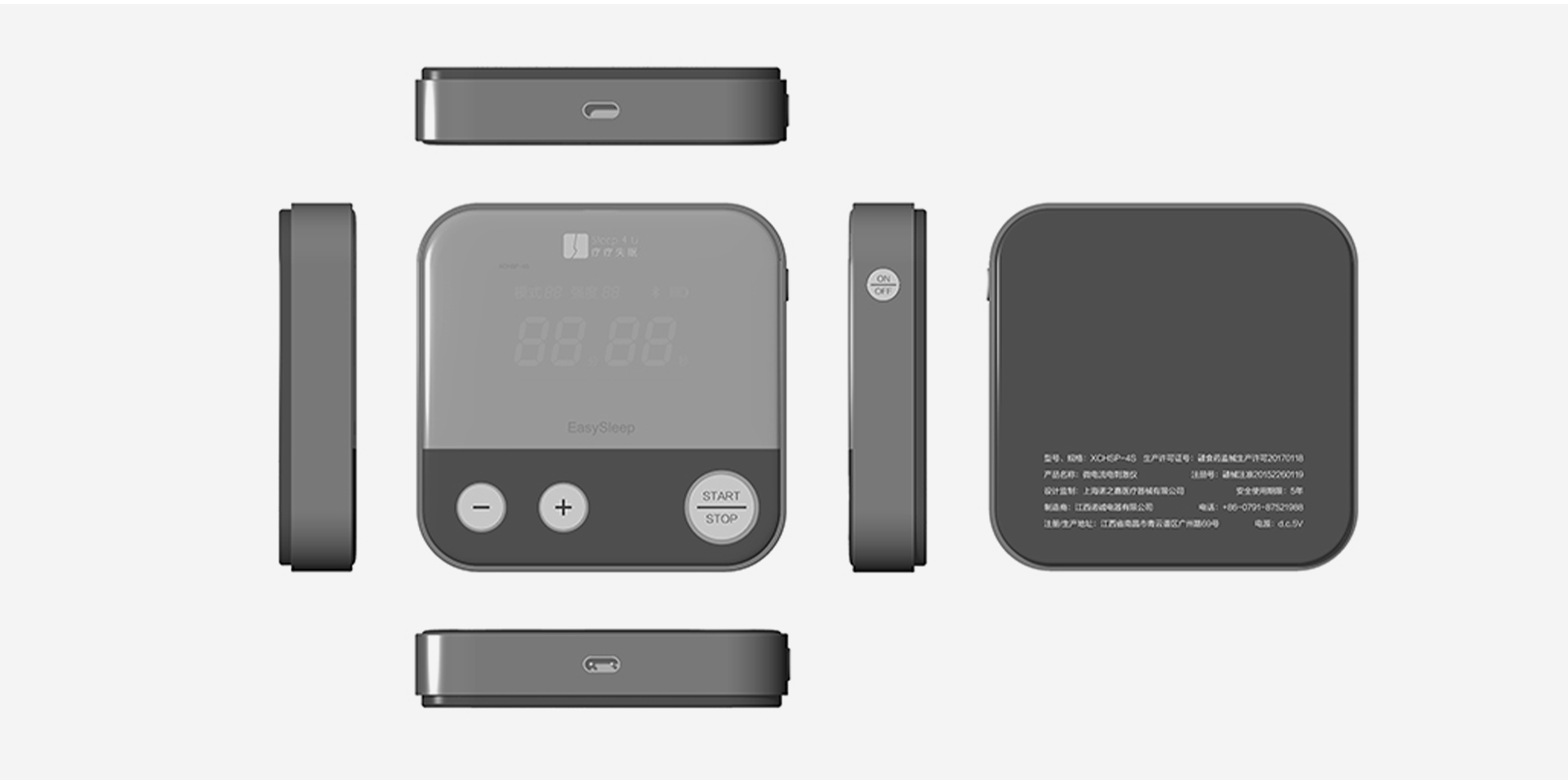 它可通過內(nèi)置芯片的核心算法,產(chǎn)生所需要的微電流;再通過耳垂連接裝置把微電流傳導(dǎo)到左右耳垂;最后通過大腦形成電流回路,以達到治療失眠的效果。用戶可通過正面的按鍵進行電流強度的調(diào)節(jié), 同時采用大屏的設(shè)計,可令用戶無須再打開手機即可直觀的看到時間、模式、強度等內(nèi)容。