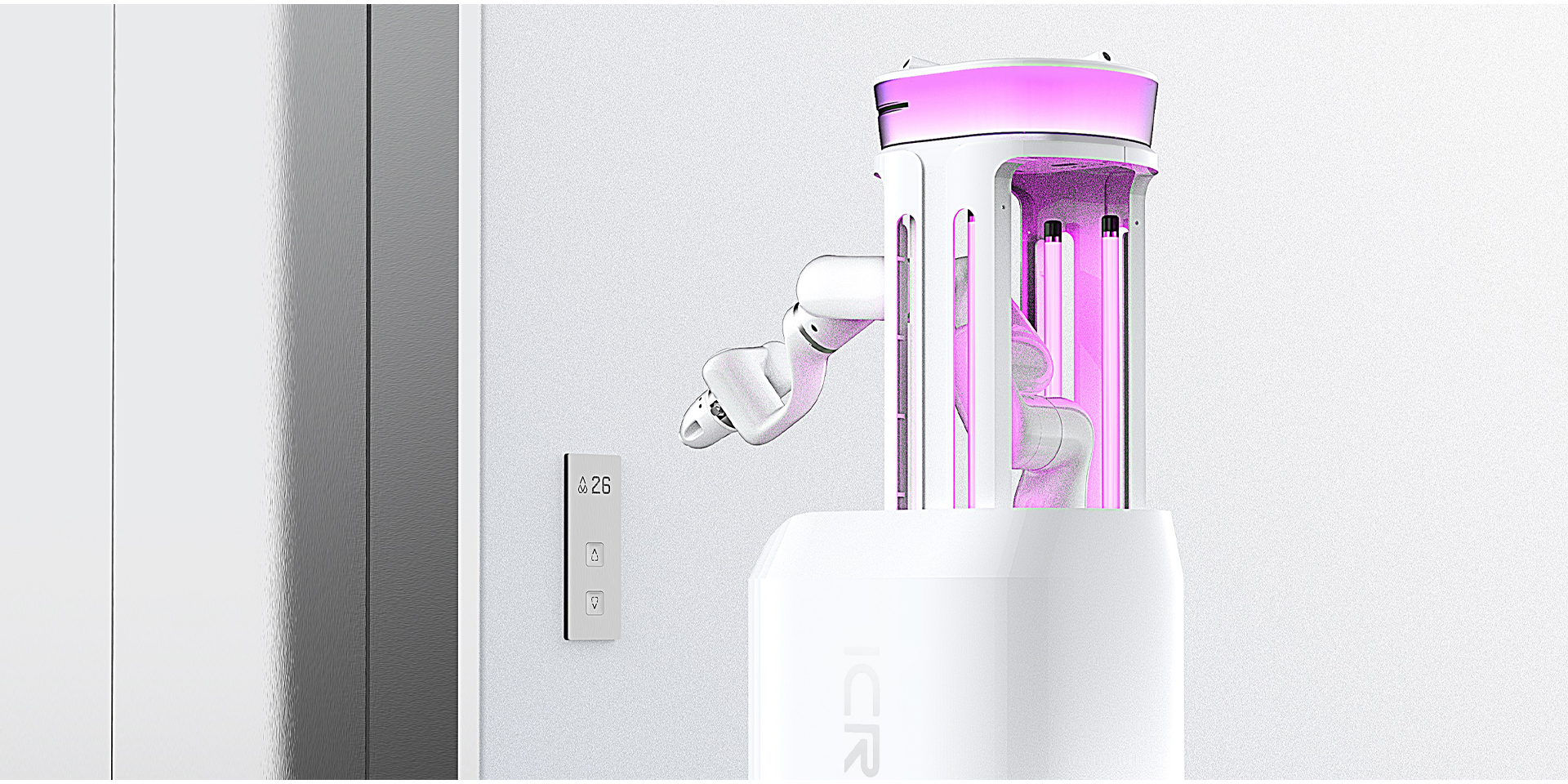 在新冠疫情的長(zhǎng)期籠罩的時(shí)代背景下,醫(yī)院的消毒環(huán)節(jié)既是疫情防控的重要一環(huán)也是控制許多其他傳染性疾病的關(guān)鍵。面對(duì)突然激增的消殺需求,醫(yī)護(hù)人員的勞動(dòng)壓力不斷增加。本次設(shè)計(jì)滿足產(chǎn)品在整個(gè)醫(yī)院系統(tǒng)中的“ICR”致力于使用簡(jiǎn)便的操作方式,自然地提高效率,模塊之間功能明確,通過(guò)現(xiàn)代化的設(shè)計(jì)語(yǔ)言、細(xì)節(jié)處理和優(yōu)質(zhì)的技術(shù),創(chuàng)造出具有美感且吸引人的產(chǎn)品,使產(chǎn)品和環(huán)境能夠融為一體,并通過(guò)功能結(jié)果反饋給人“溫度”。小嘟機(jī)器人能夠自然地融入醫(yī)院環(huán)境,選用靈敏且精準(zhǔn)的傳感器,準(zhǔn)確在醫(yī)院各個(gè)位置進(jìn)行消毒,機(jī)械臂的噴射消毒和紫外線消毒結(jié)合的方式,大面積消毒和小范圍精準(zhǔn)消毒,解決了醫(yī)院消毒的需求。
