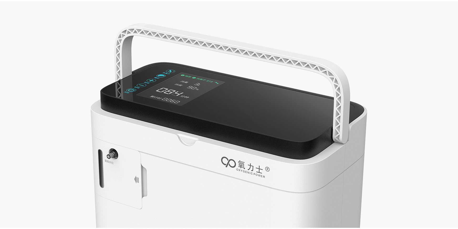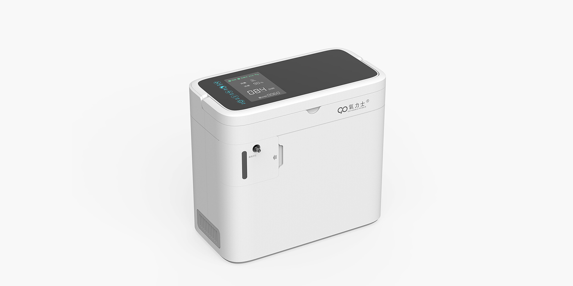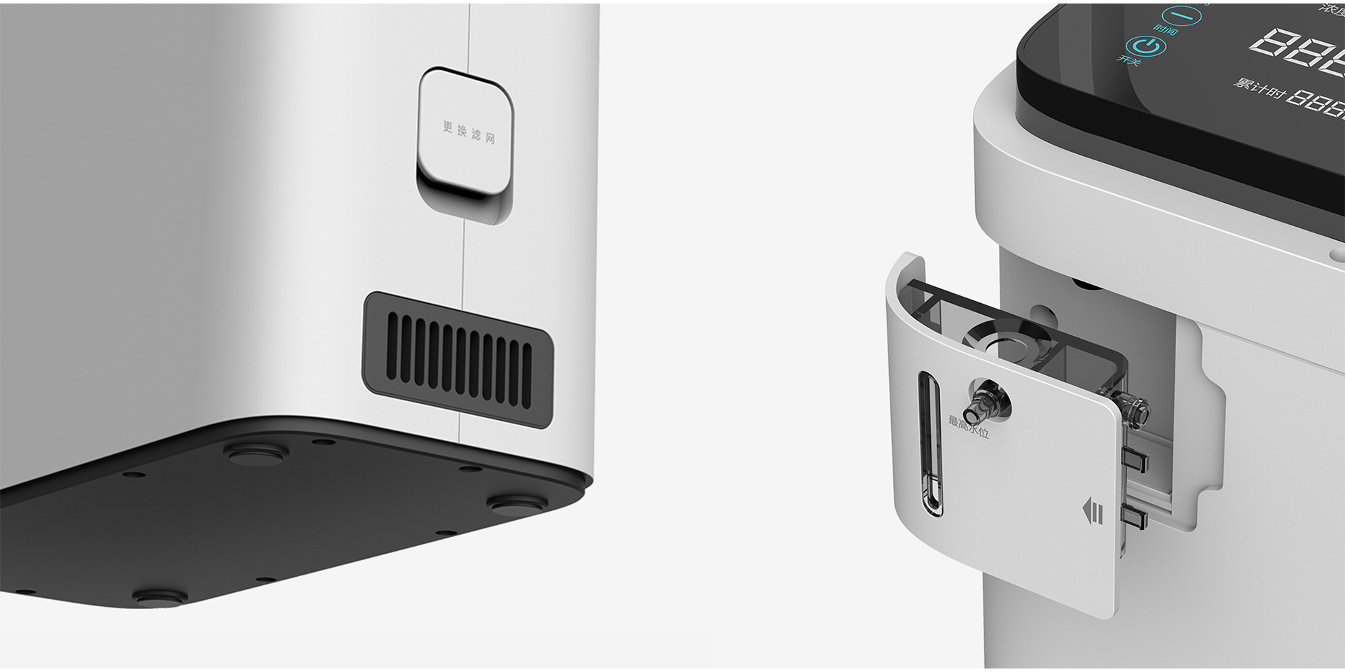 氧力土便攜式氧氣機(jī)目標(biāo)場(chǎng)景為家庭使用,其容量為1L,由于容量小,體積也很小。整個(gè)產(chǎn)品使用友好的界面設(shè)計(jì)和方形外觀設(shè)計(jì),簡(jiǎn)約不簡(jiǎn)單的造型語(yǔ)言,使整個(gè)產(chǎn)品變得更加完善。