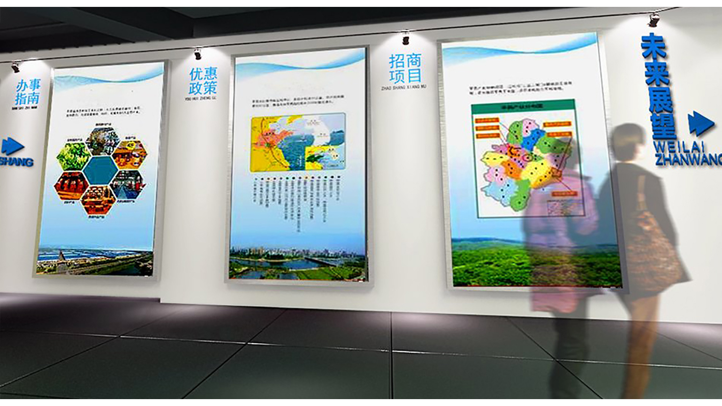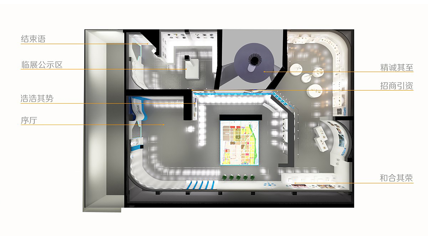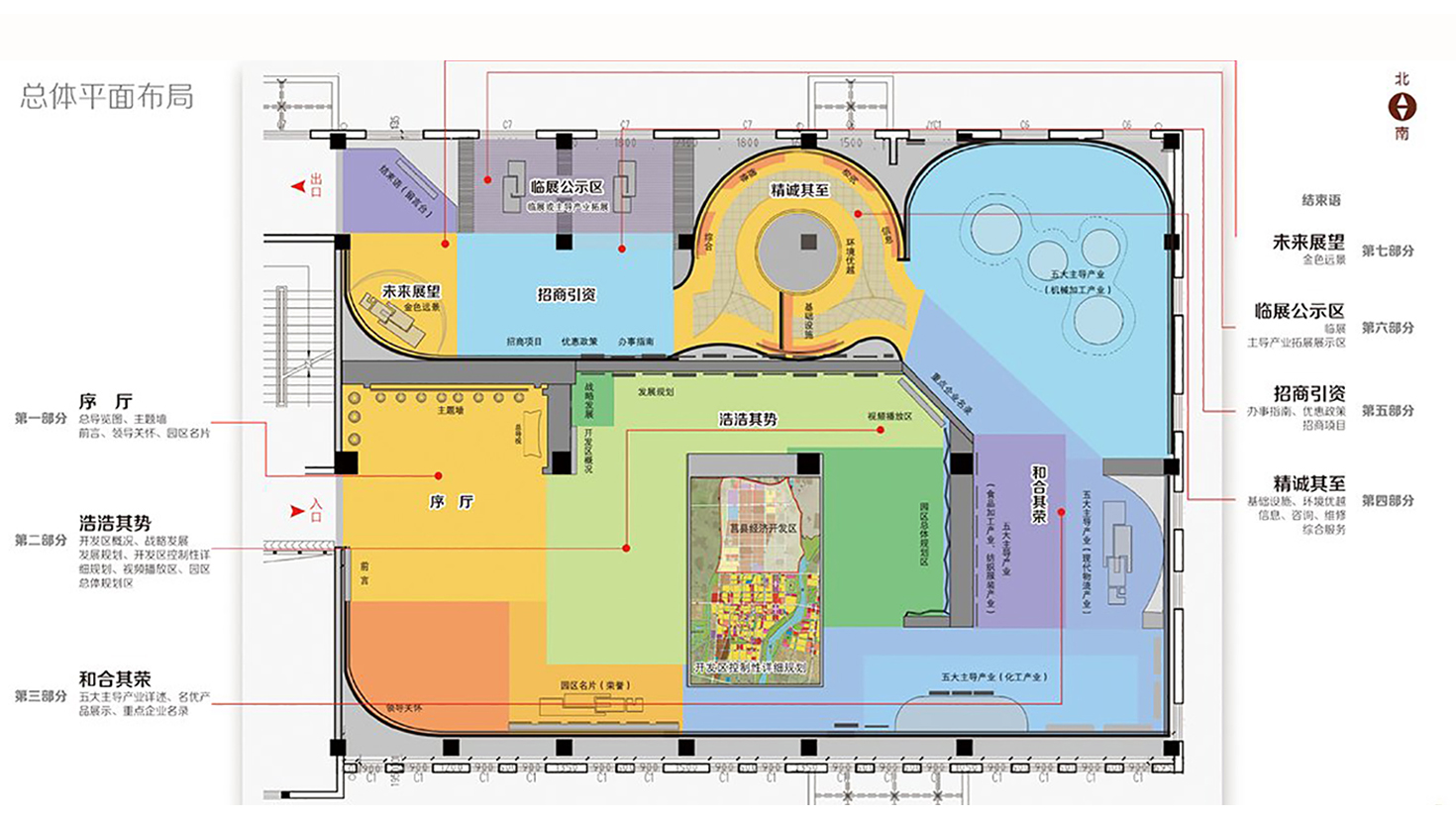 設(shè)計(jì)提取“莒國(guó)文化”的氣魄輝煌和“高層次產(chǎn)業(yè)”的高端科技這兩大元素作為展示的主要脈絡(luò)。